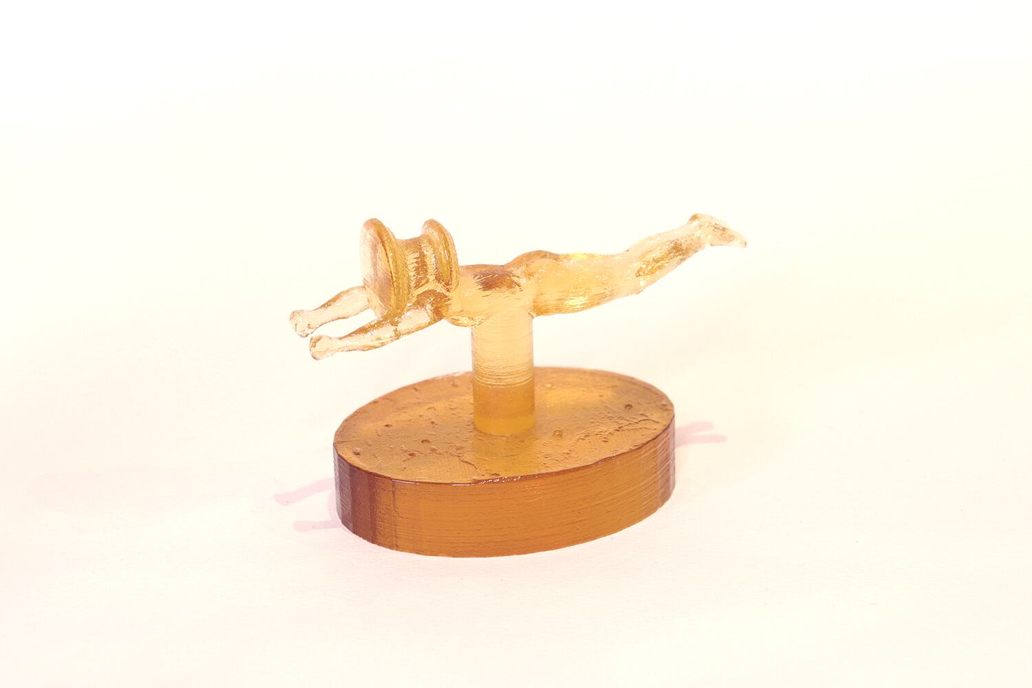 川島大幸の彫刻作品。3Dプリントをガラスキャスティング。 3Dによる構成の面白さ、ガラスの綺麗な色、質感が特徴の作品です。 素材:ガラス サイズ:7×11×5cm